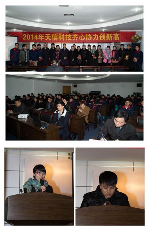 憶往昔,看今朝。公司經(jīng)過這幾年的快速發(fā)展,無論是在銷售業(yè)績上、品牌知名度上都迎來了質(zhì)的飛躍,專業(yè)化的精英團隊、科學(xué)規(guī)范的管理制度正在逐步成型,公司所發(fā)生的令人欣喜的改變,正是全體同仁努力耕耘與付出的結(jié)果。大會首先由公司總經(jīng)理助理葉波同志、范健挺同志發(fā)表了新年致詞。他們回顧了2013年公司在生產(chǎn)管路、產(chǎn)量提升、品質(zhì)改進等方面取得的成績,指出了管理層人員的優(yōu)點與不足,對全體員工2013年的辛勤勞作表示了衷心的感謝,接下來有我們總經(jīng)理陳為剛同志發(fā)表演講,宣讀了2014年天信科技公司的人員任命;調(diào)整出新的組織架構(gòu)和人員配置;他回顧了公司近年來的快速發(fā)展,充分肯定了過去一年大家為公司發(fā)展所做出的努力,并衷心感謝了這些為公司發(fā)展付出努力的家人;指出了公司2014年的發(fā)展目標和方向,希望新的一年天信科技全體員工能再次共同攜手,再接再勵,共同書寫天信科技全新的燦爛與輝煌。大會現(xiàn)場為在公司過去一年中表現(xiàn)出色的同仁頒發(fā)了優(yōu)秀員工獎項、積極分子榮譽,頒獎嘉賓陳總、葉總、范總分別對2013年優(yōu)秀員工、積極分子頒發(fā)了表彰獎勵。年度優(yōu)秀員工及積極分子張少蘆、游修筆二位代表所有獲得榮譽的員工者發(fā)表了獲獎感言。在場同志們?yōu)檫@些手捧豐厚獎金的獲獎?wù)攉I上了最真誠的祝賀和最熱情的掌聲,他們滿懷激情、熱情洋溢,對公司的明天寄予了希望。